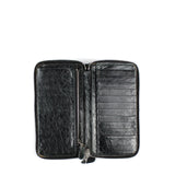 Portefeuille modèle City de la maison Balenciaga, en cuir noir et détails argentés.